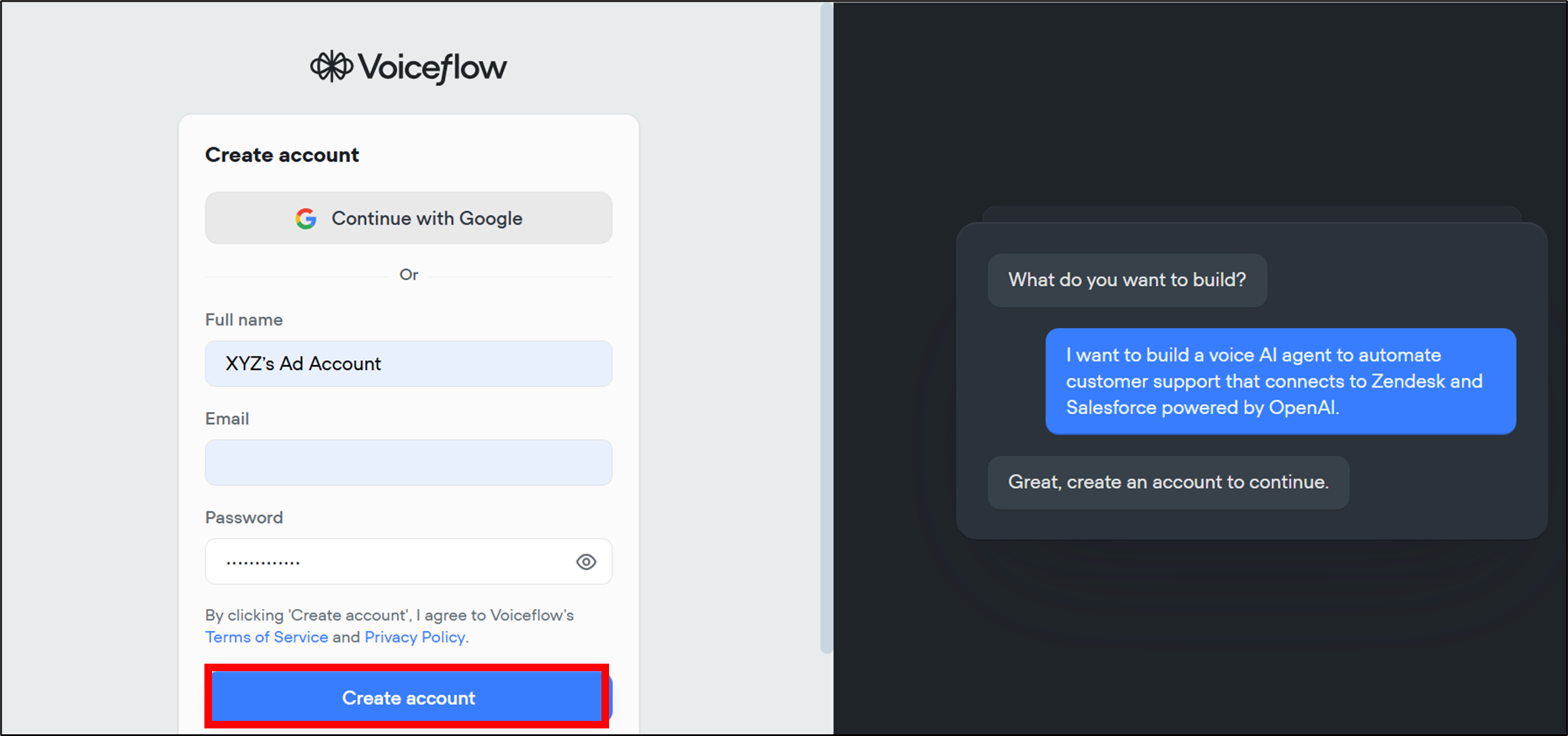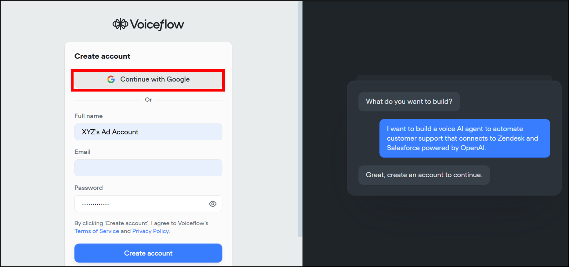 Once you have an account, you can start building an agent from scratch or use a template to help you automate tasks.